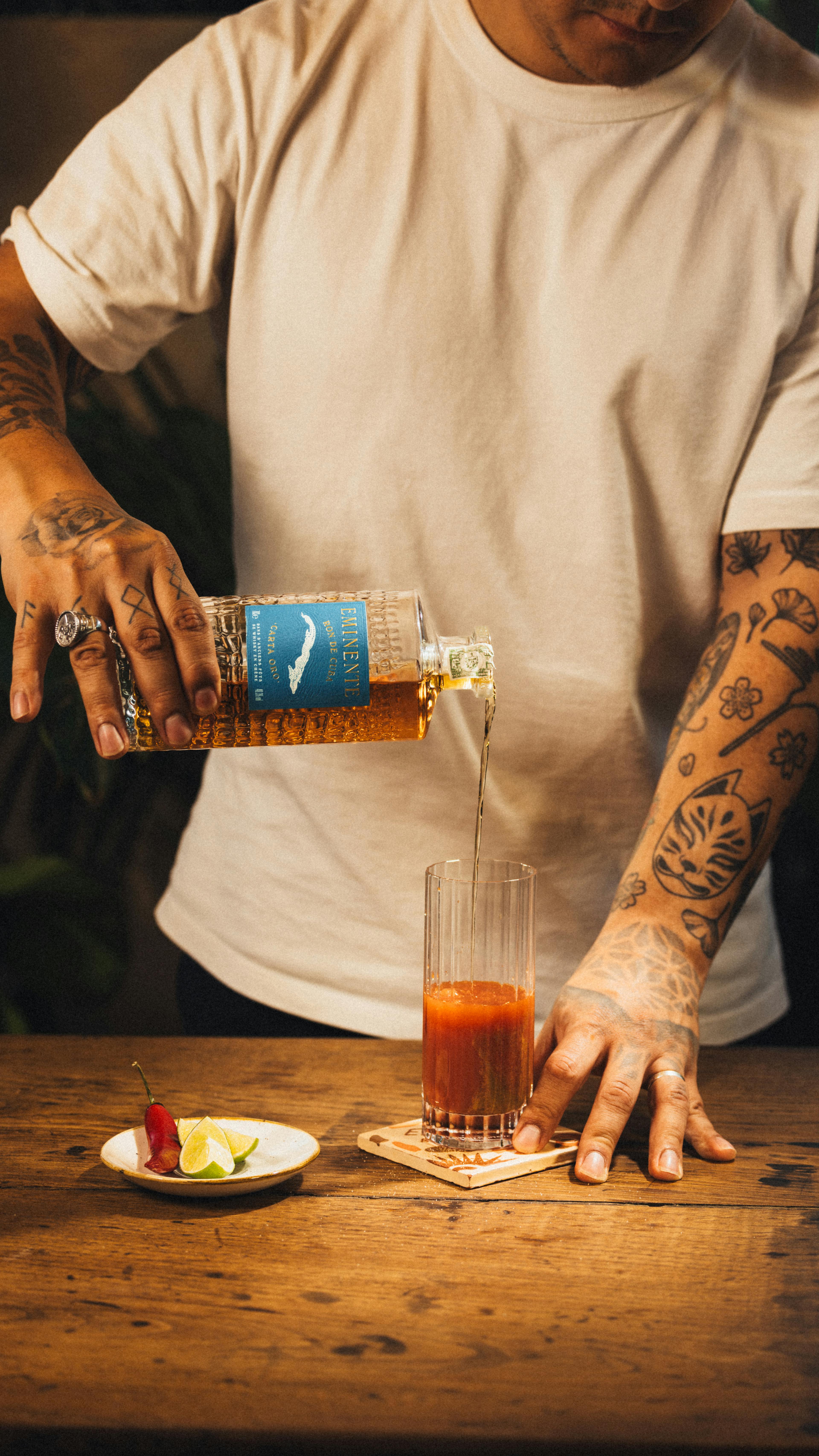 Versez le rhum et le reste des ingrédients excepté le tabasco et le sel de céleri.