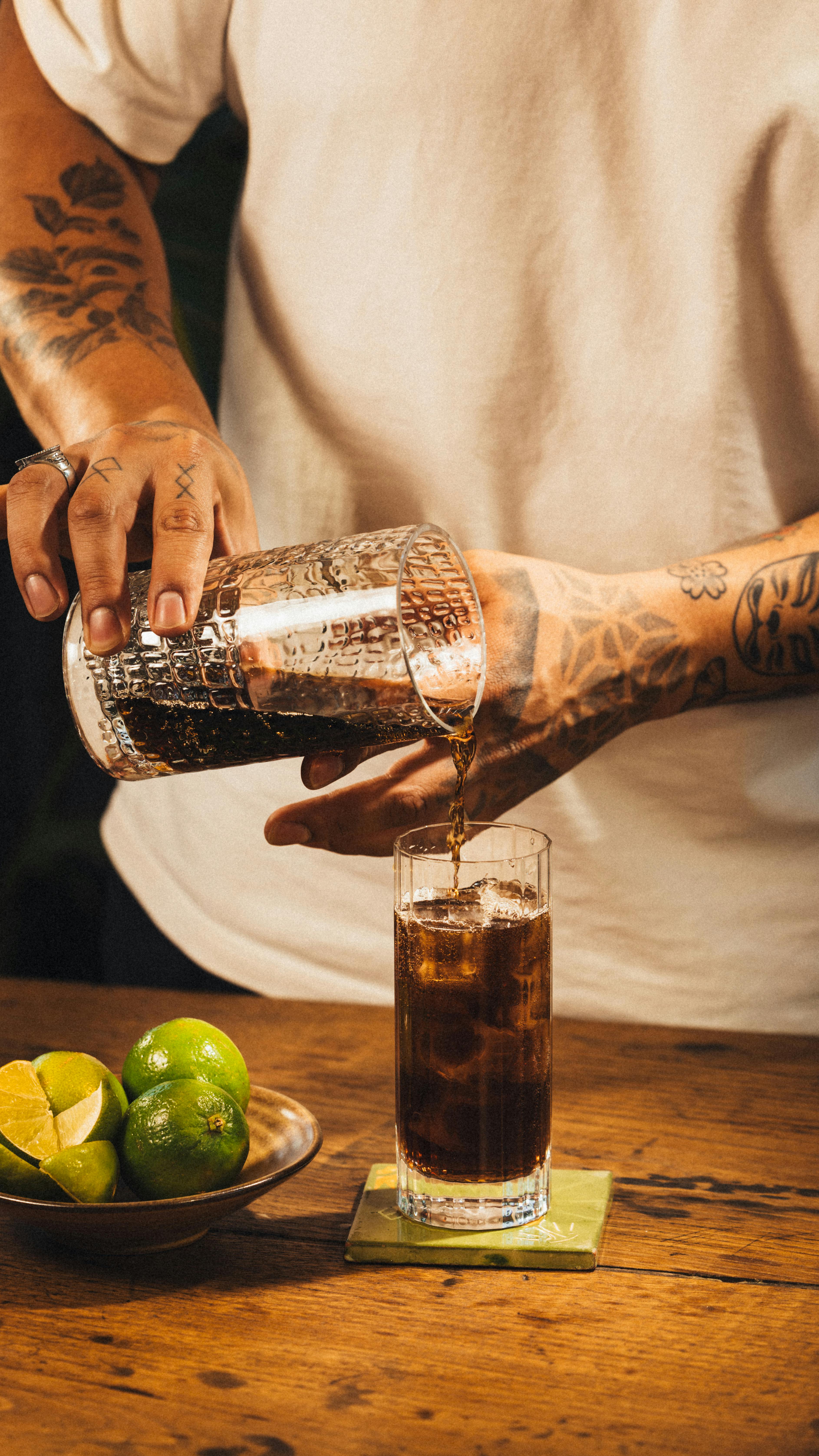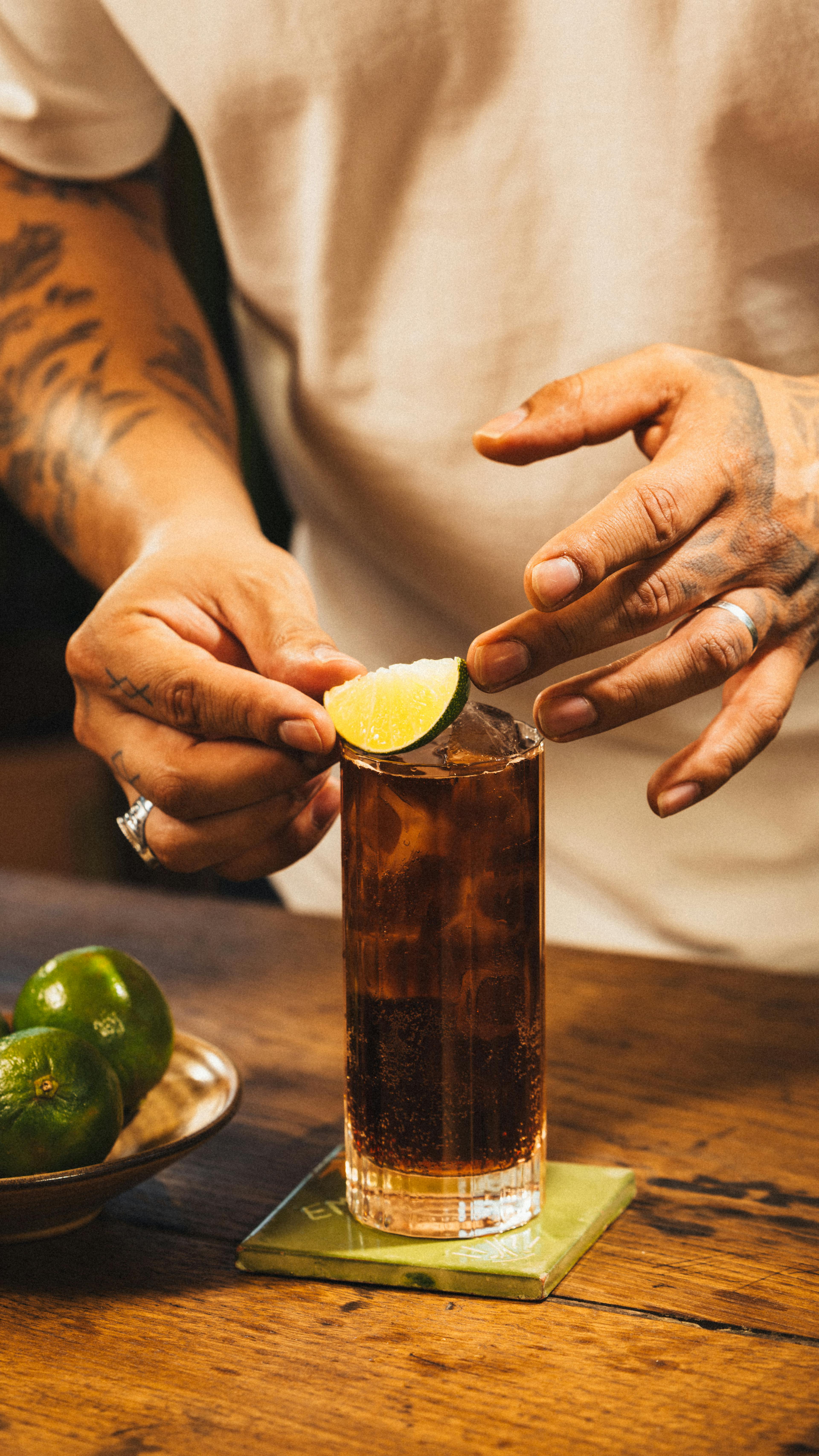 Remuer doucement pour mélanger et décorez avec un quartier de citron vert.