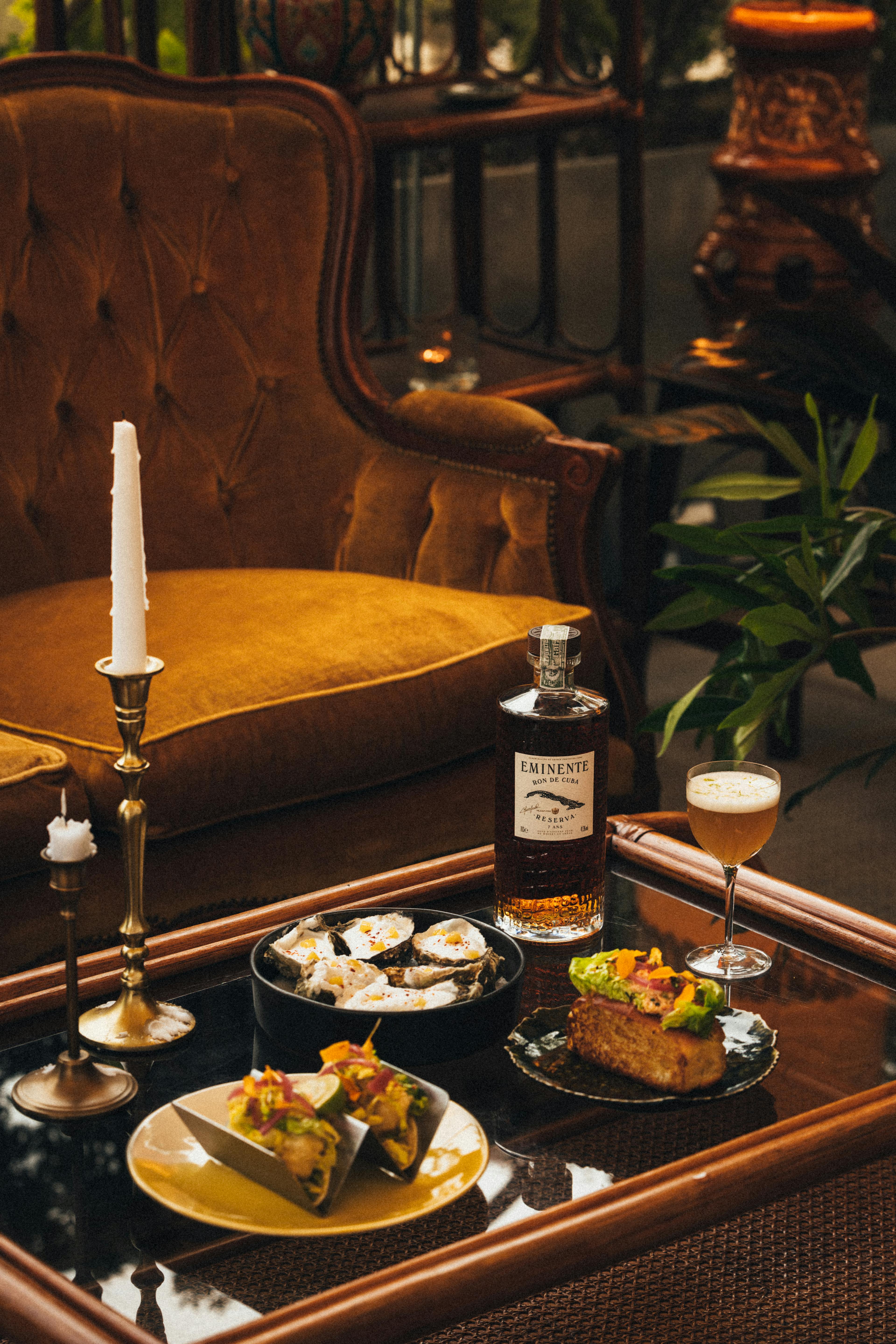 At the bar, an exclusive menu of signature creations awaits, showcasing flavors inspired by Cuba. Whether you choose the Cayo Coco Daïquiri, the Cocodrilo Amarillo, or the Sol y Plátano, each cocktail is an invitation to discover the rich aromas of Eminente rum.